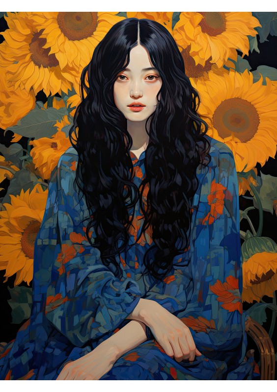 Whey - Bluza z grafiką Art "Sunflower" Black