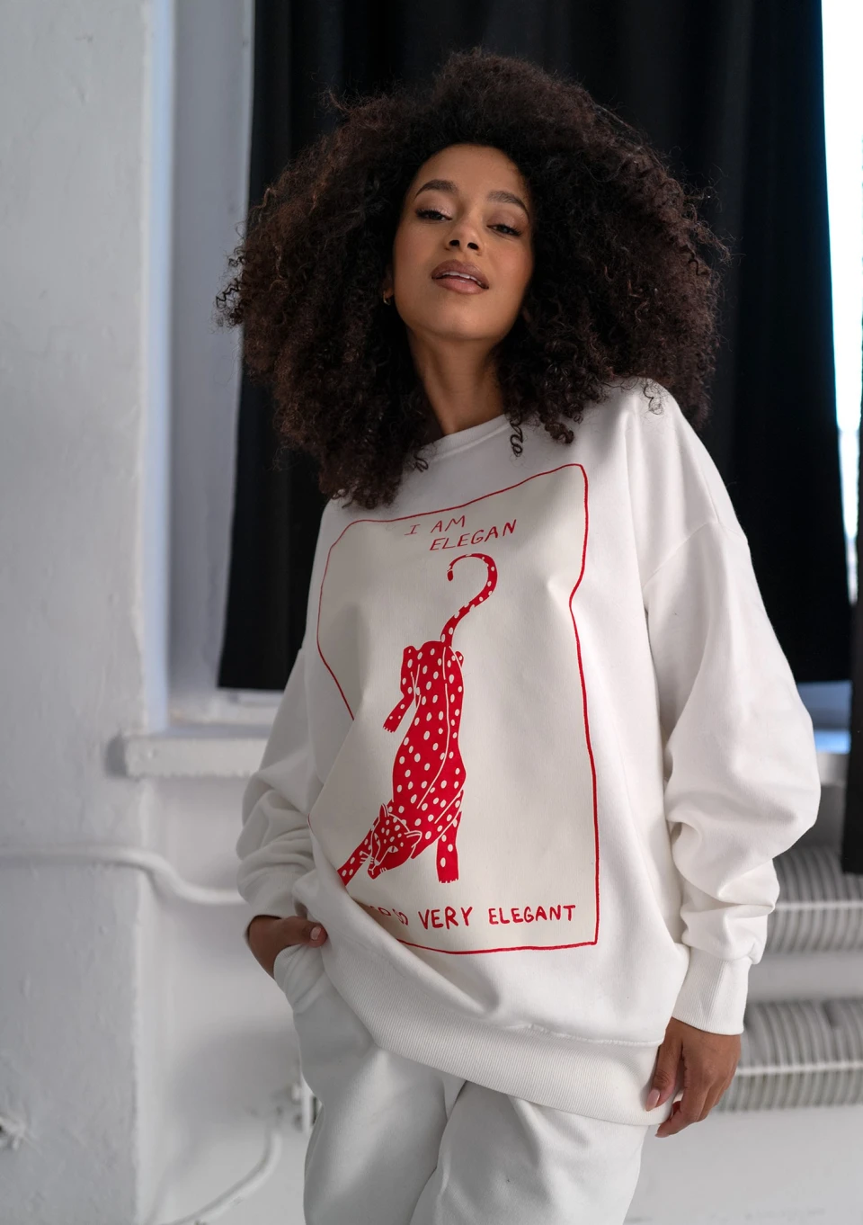 Whey - Bluza z grafiką "I am Elegan" Creamy