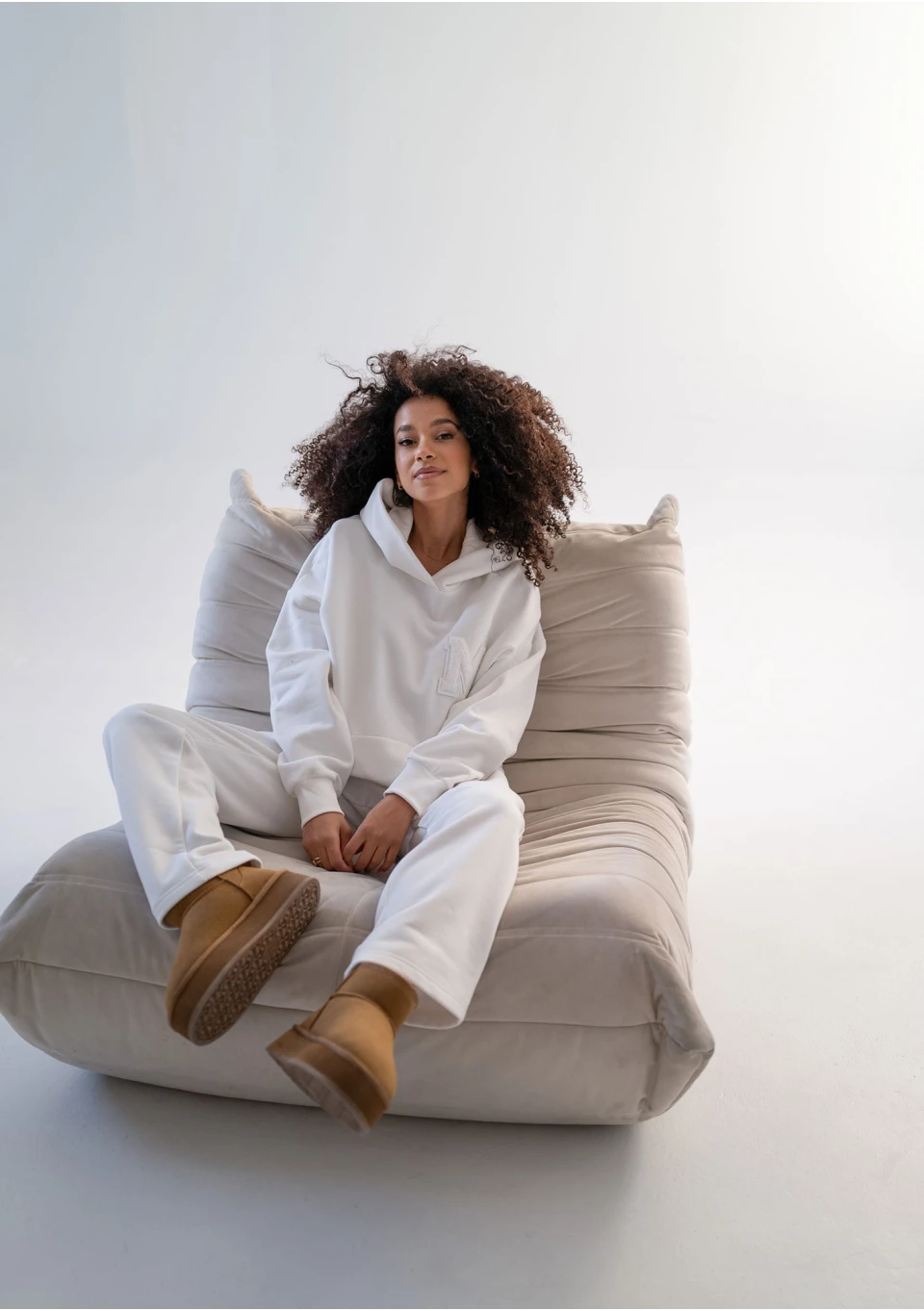Ta bluza damska to twój nowy ulubiony element garderoby. Jest klasyczna, luźna i nieco oversizowa, co sprawia, że to idealny wybór na chwile relaksu i luźne spotkania w chłodniejsze dni. Jest ciepła, miękka i naturalna – otuli Cię niczym przyjemny koc, zapewniając niezrównany komfort. W kojącym odcieniu ecru bluza "Smart" wygląda szlachetnie i elegancko. Jej jasny kolor wprowadza do stylizacji świeżość i lekkość. W połączeniu z dedykowanymi spodniami dresowymi "Smart", dostępnymi w tym samym odcieniu stworzy bardzo stylowy komplet.