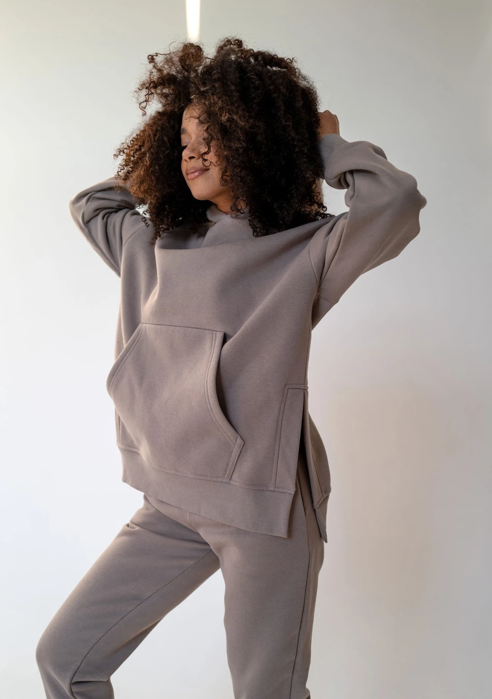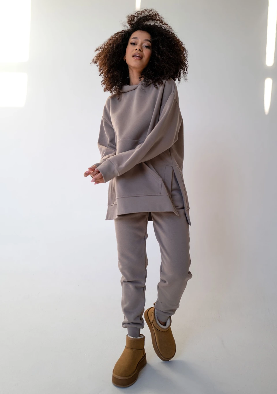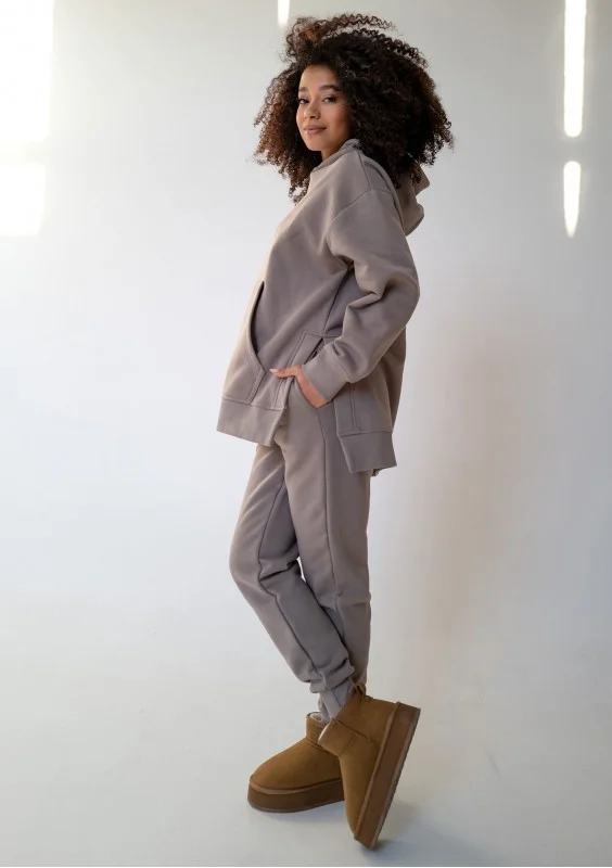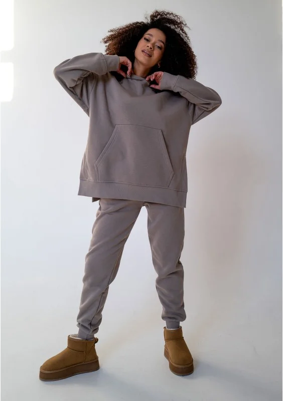 Otul się w cieple tej niezwykle miękkiej, długiej bluzy damskiej z kapturem i kieszenią w odcieniu taupe. To prawdziwa oaza przytulności dla każdej kobiety pragnącej maksymalnego relaksu w luźnym fasonie oversize. Poczuj, jak delikatna, bawełniana dzianina pieści skórę, zapewniając błogi komfort i przyjemne ciepło, idealne na chwile odprężenia. Bluza Simply jest szyta w Polsce.