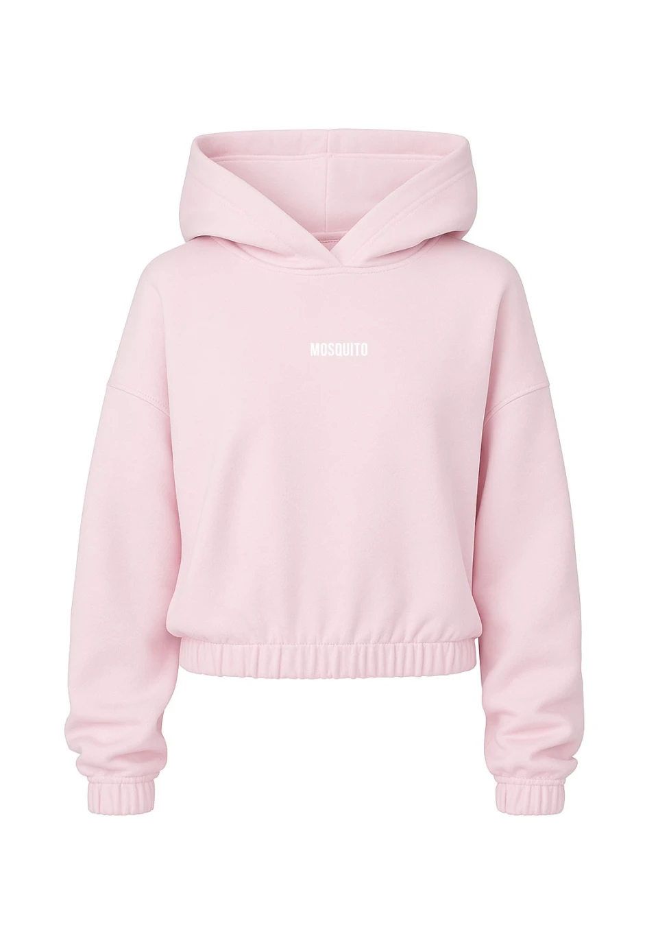 Słodka bluza damska z kapturem, w pastelowym różu. Na dole wykończona ściągaczem. Odpowiednia na cieplejszą porę, z miękkiej dzianiny bawełnianej.