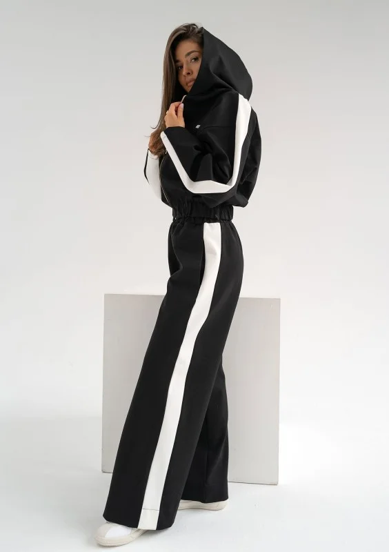 Wygodna bluza z kapturem w najmodniejszym stylu, dopełniona lampasami i drobnym logo. Model w uniwersalnym, czarnym kolorze, wykonany ze świetnej tkaniny z wiskozą.