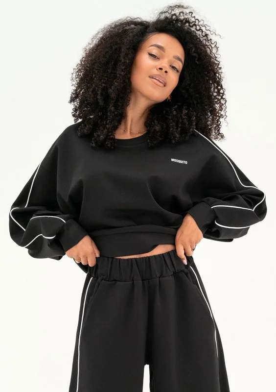 Czarna bluza damska z delikatnie dekorującymi lamówkami. Oczaruje Cię świetnym materiałem z wiskozą.