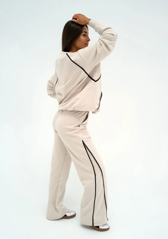 Bailee - Spodnie dresowe z szeroką nogawką Creamy