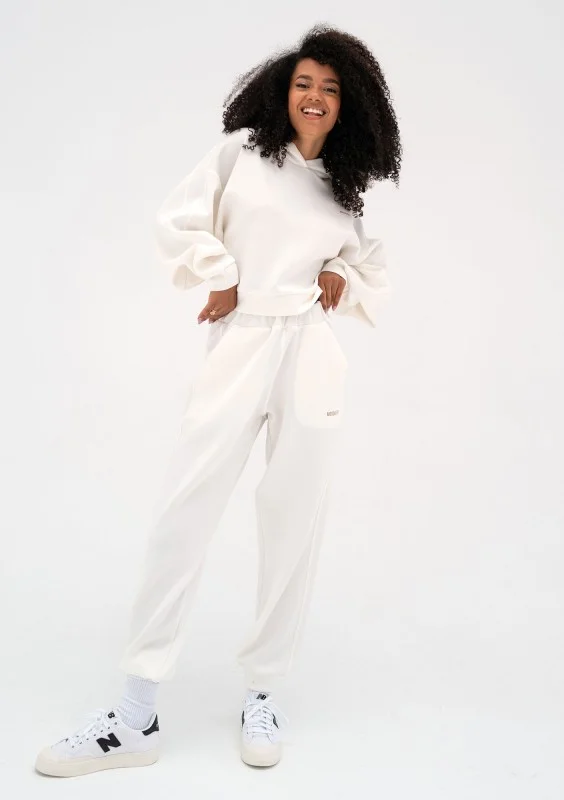 Modne dresy damskie Mosquito przechodzą stylową zmianę! W nowym sezonie królują nowe trendy, szczególnie lampasy i lamówki inspirowane modą lat 90. Dres Chase stanowi subtelną odsłonę tego nurtu. Bluza damska z kapturem została wykonana w jednym odcieniu ecru, ozdabia ją drobne, beżowe logo. Świetna jakość jest widoczna na pierwszy rzut oka w wielu detalach, między innymi urozmaiconym trakcjom szwów. Model w kolorze ecru cudnie rozjaśni Twój wygląd i będzie pięknie prezentować się przy wiosennej pogodzie!