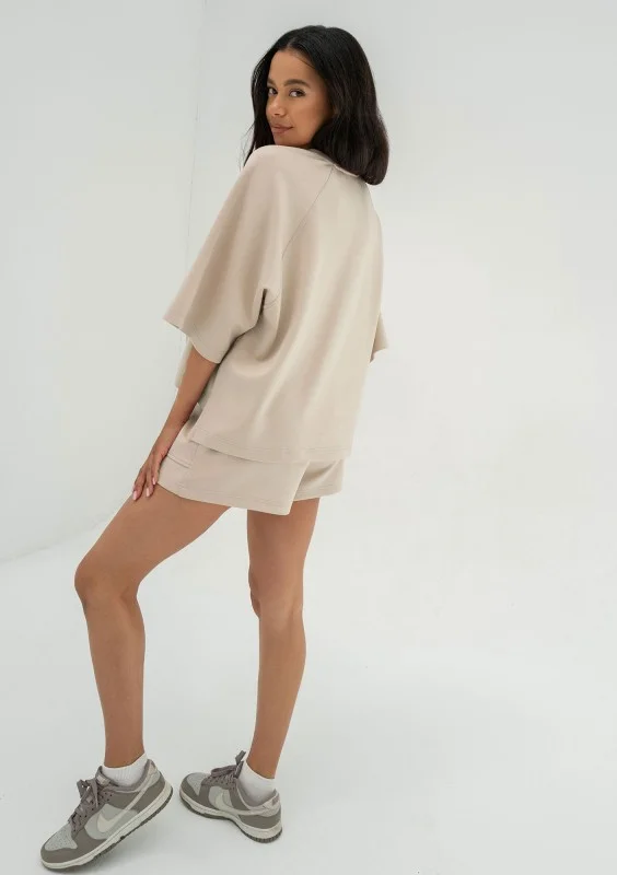 Jess - Bluza z dzianiny soft z krótkim rękawem Beige