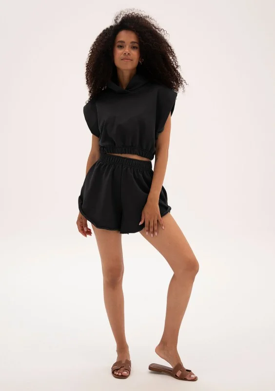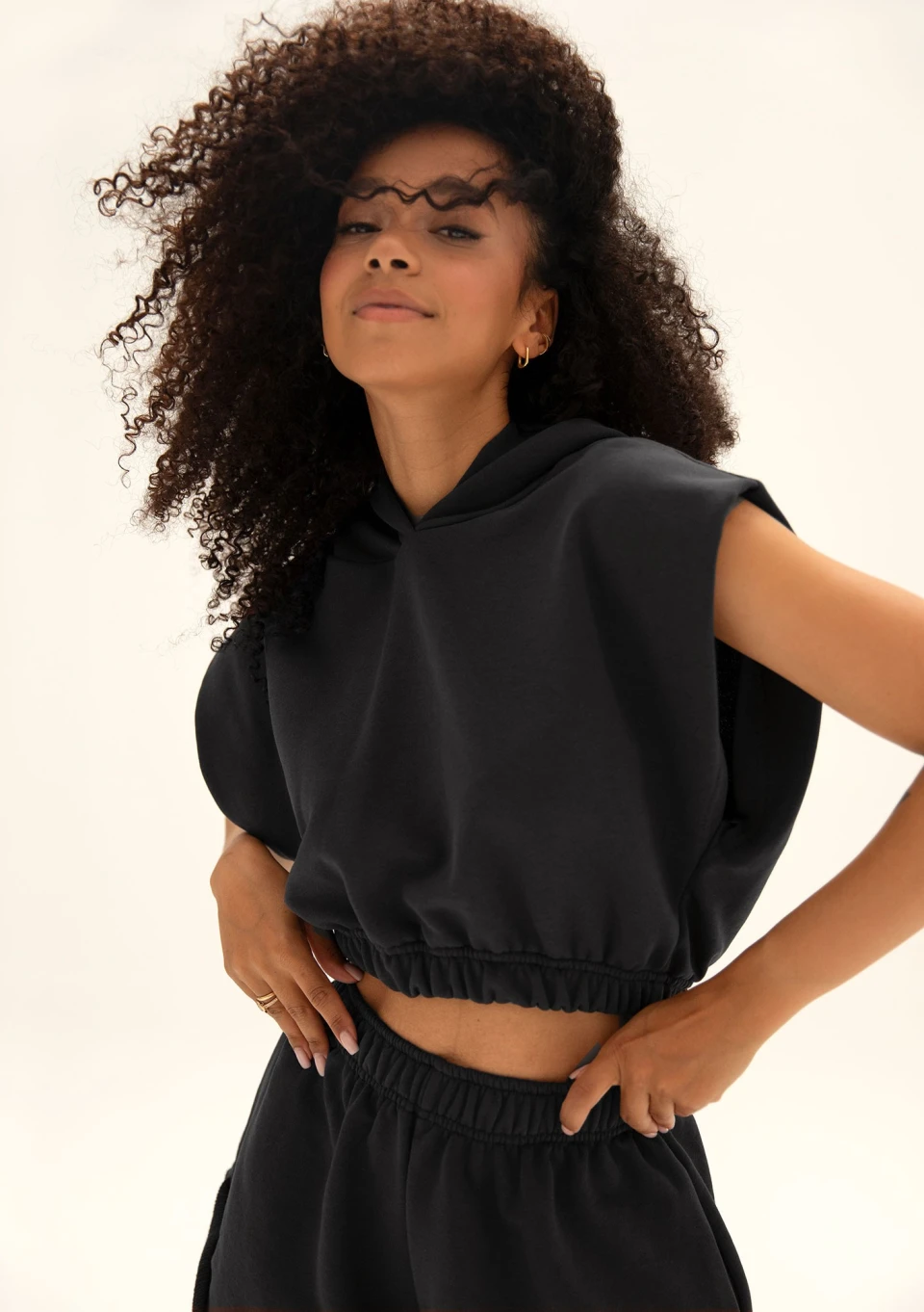 Sugar Fit - Bluza z kapturem bez rękawów boxy cropp Black