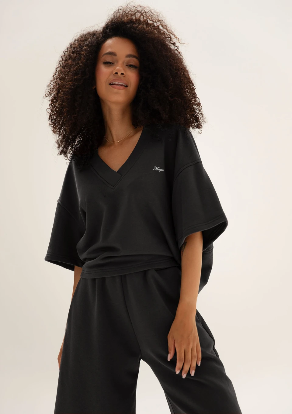Cozy Flow - Bawełniana bluza oversize boxy v-neck Black