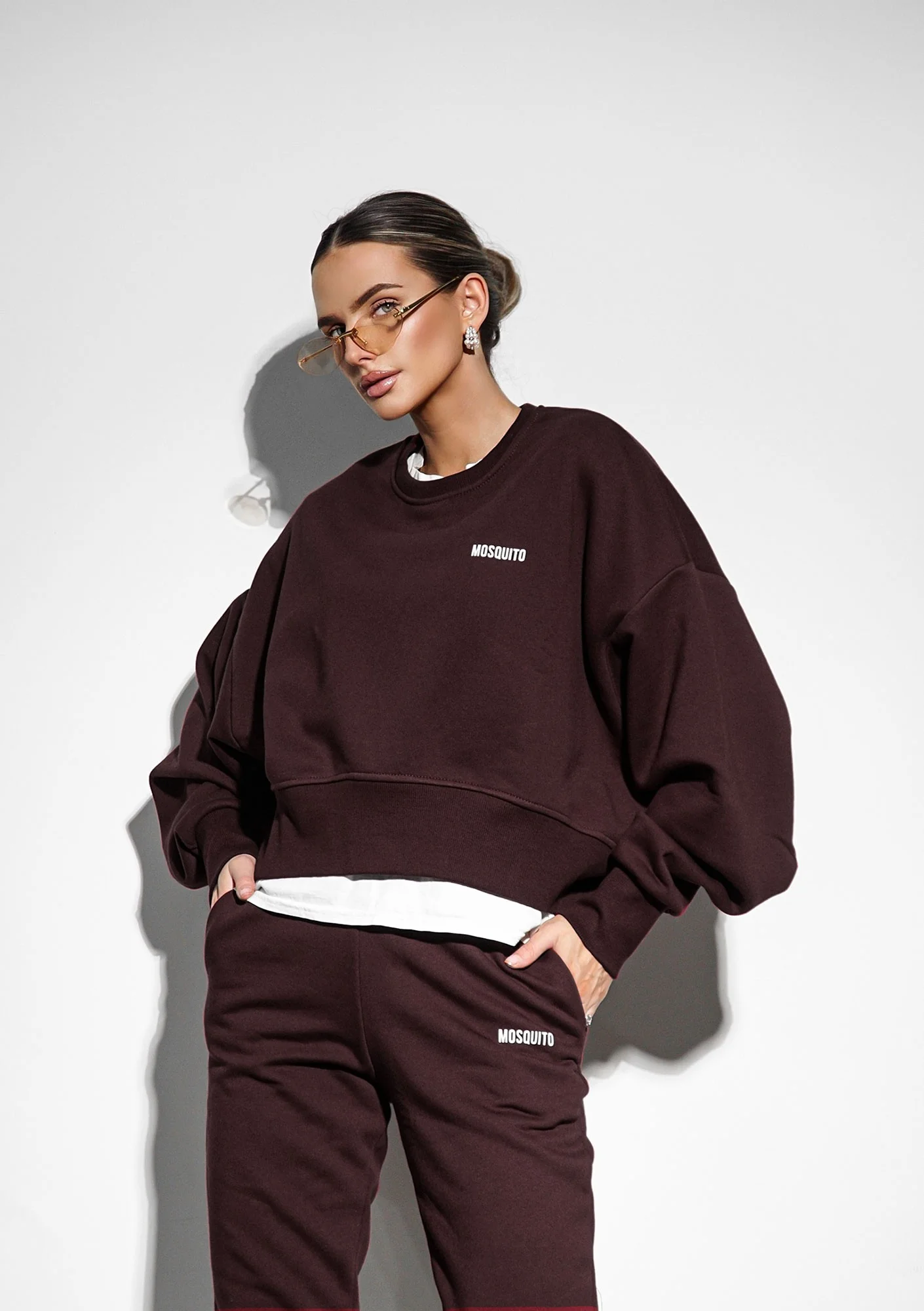 Staranny design. Przepiękny, rozgrzewający głębią czekoladowy brąz. Maksimum swobody. Nieoceniona miękkość. Brązowa bluza damska bez kaptura Shore o luźnym, szerokim wykończeniu oversize to strzał w dziesiątkę! Nasze bluzy damskie są projektowane w rożnym stylu i kroju, a prezentowany fason pozytywnie zaskoczy każdą miłośniczkę szerokich, luźno opadających i nieco maskujących sylwetkę modeli o niedługiej, nieco motylkowej formie. Bluzę sygnujemy stylowym i minimalistycznym logotypem Mosquito. Dbamy o trwałość i staranne wykonanie białego nadruku, byś mogła cieszyć się nie tylko wyglądem, ale i doskonałą jakością produktu.