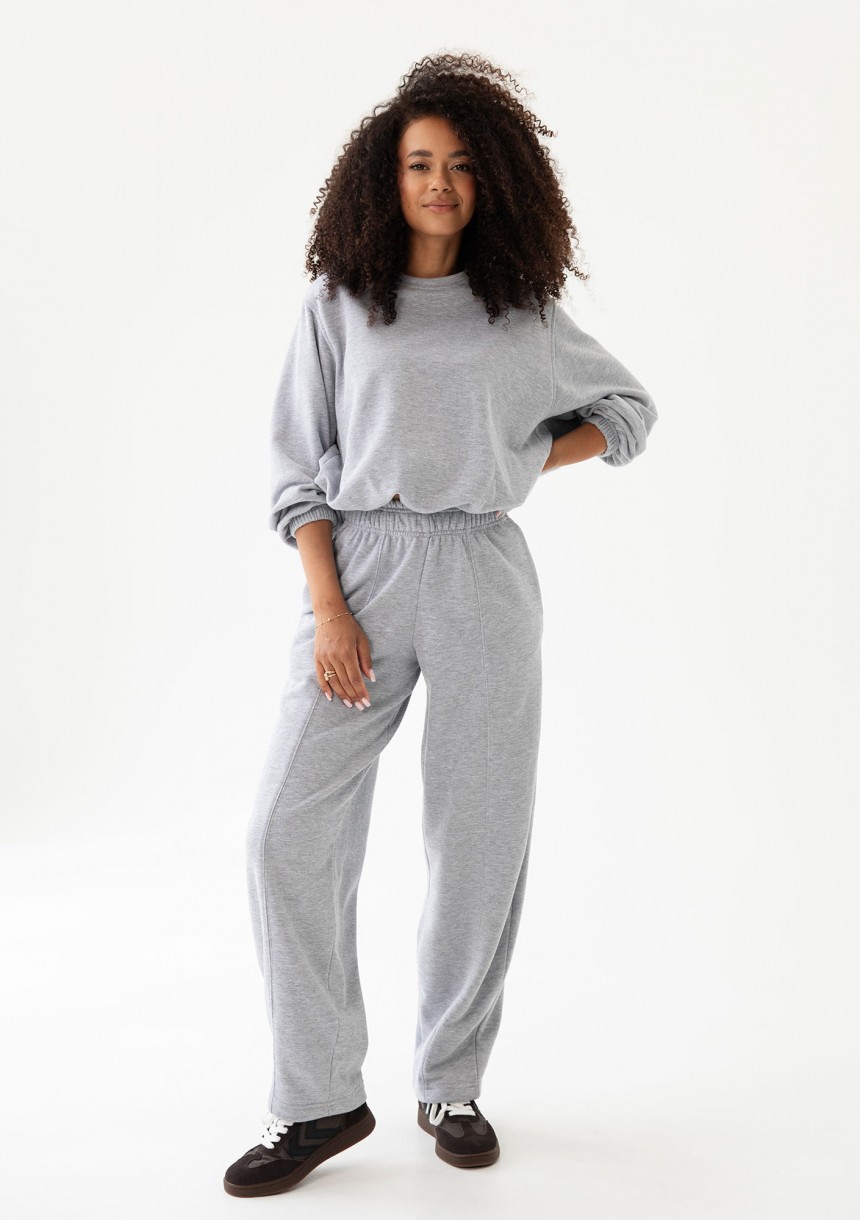 Fason bluzy Puff to najmodniejszy typ bombki: luźna i obszerna góra swobodnie opada, dół jest ściągnięty, co powoduje lekkie marszczenie i zebranie materiału na wysokości pasa spodni. To właśnie ten efekt nadaje bluzie charakterystyczną formę. Rękawy są również luźne i wykończone na końcach ściągaczem. Prezentujemy model wykonany z miękkiej, bawełnianej dzianiny pętelkowej, nieco grubszej, idealnej też na chłodniejszą porę. Wybierz bluzę w melanżowym, szarym kolorze - to popularny, prosty do noszenia na co dzień wybór.