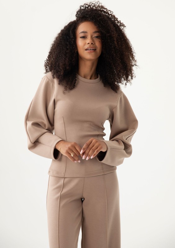 Soya - Bluza z modelującymi przeszyciami z dzianiny soft Latte