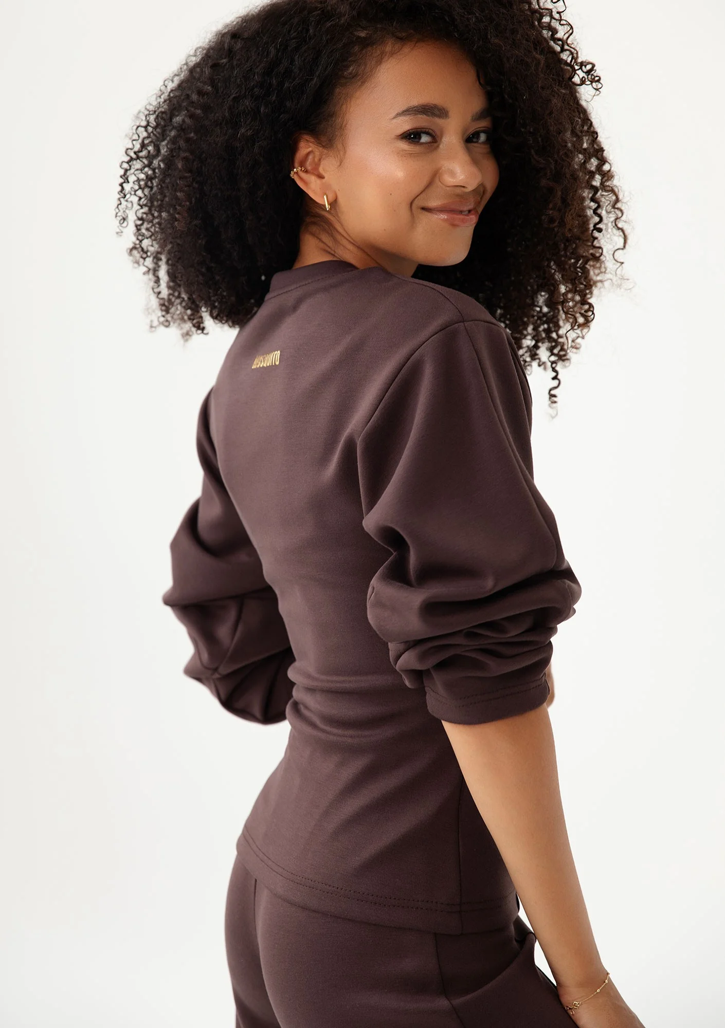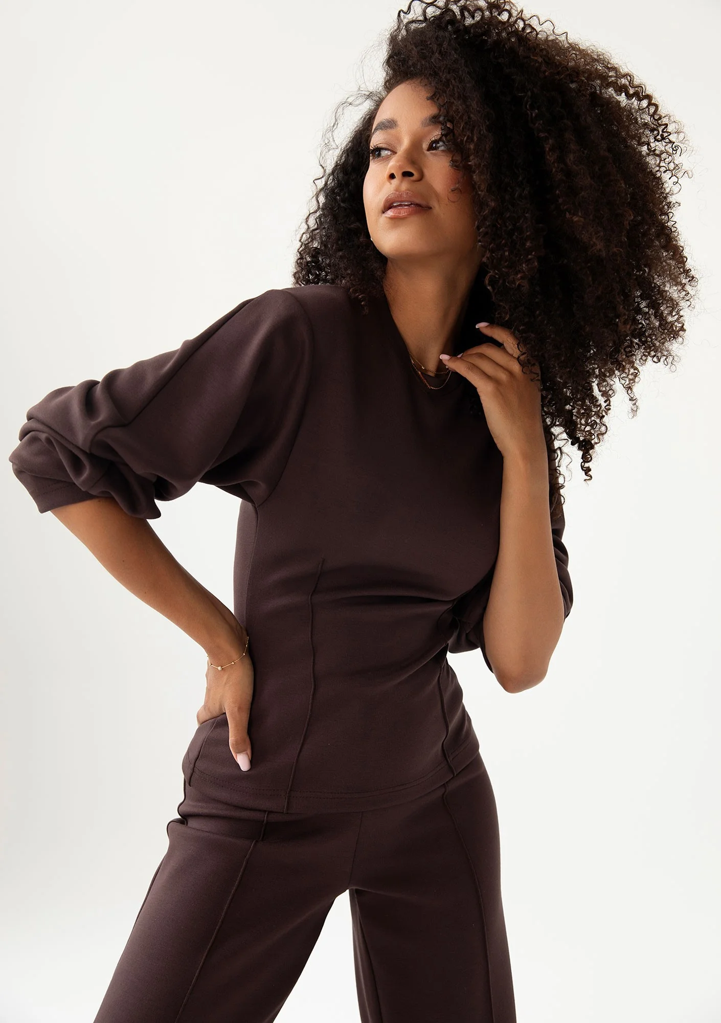 Soya - Bluza z modelującymi przeszyciami z dzianiny soft Brown