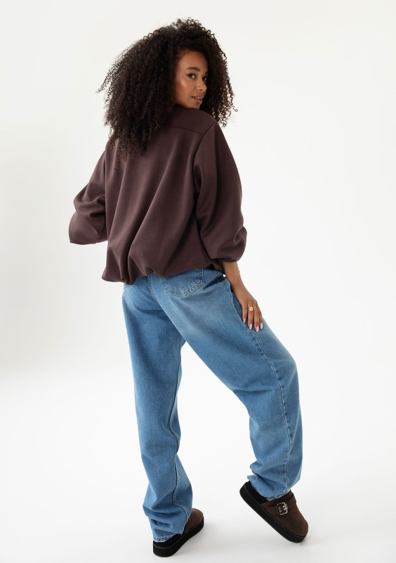 Designerska, brązowa bluza Bumo idzie w parze z całkowitą wygodą i uniwersalnym zastosowaniem. Postaw na ten unikatowy fason o kroju modnej bomberki.