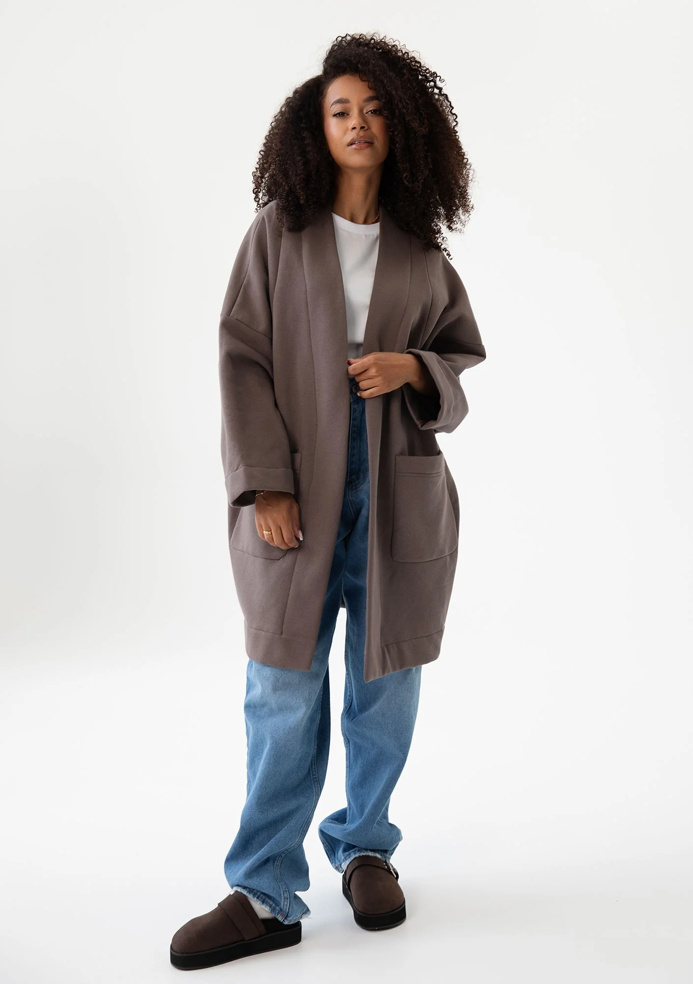 Muva - Oversizowa narzutka kimono z grubej dzianiny Savannah Tan