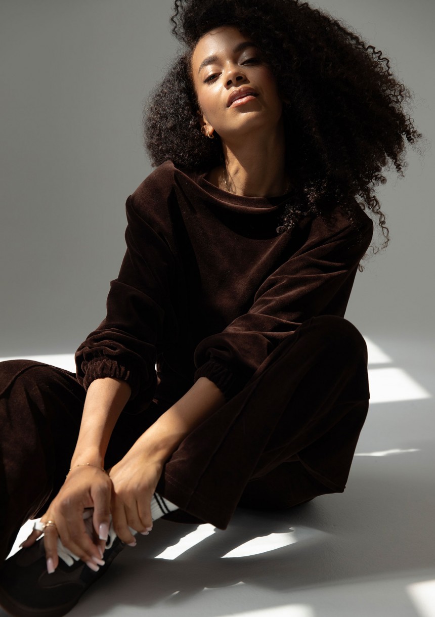 Vell - Bluza welurowa z poduszkami Dark Chocolate