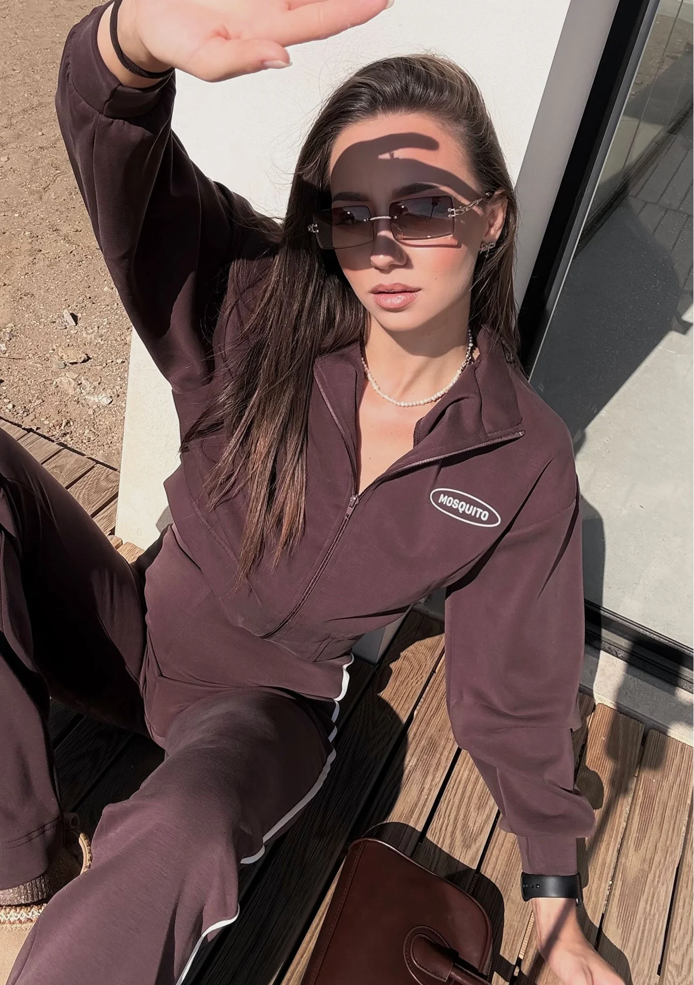 Relay - Krótka bluza rozpinana ze stójką Brązowa