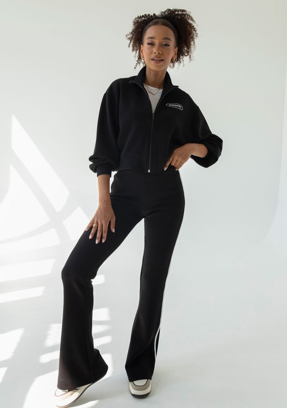 Stylowa bluza damska o krótkim kroju, wygodnie zapinana, wykończona stójką. Wykonana z wyjątkowej dzianiny z modalem, świetnie układa się na sylwetce.