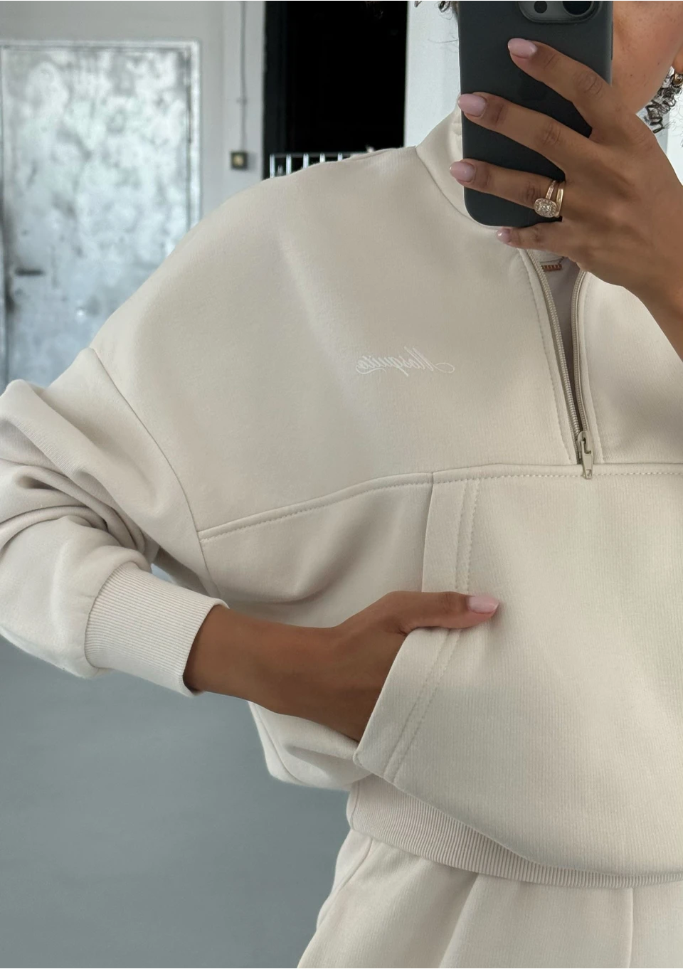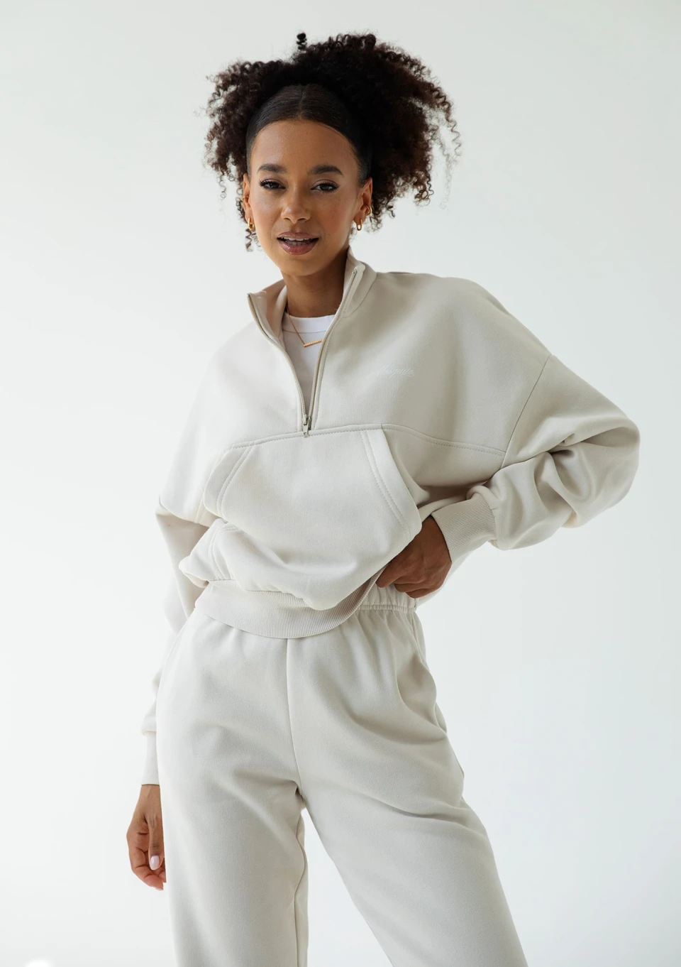 Tide to stylowa i wygodna bluza damska z półgolfem, stworzona w Polsce z troską o wysoką jakość wykonania praktyczność. Będzie Ci towarzyszyć od rana do wieczora – w pracy, na spacerze, czy podczas odpoczynku. Dyskretne logo z finezyjną czcionką dodaje unikalnego i nieco eleganckiego charakteru. Stanowi piękną propozycję jasnej, kokosowej estetyki koloru, który zadba o pełen subtelności wizerunek.