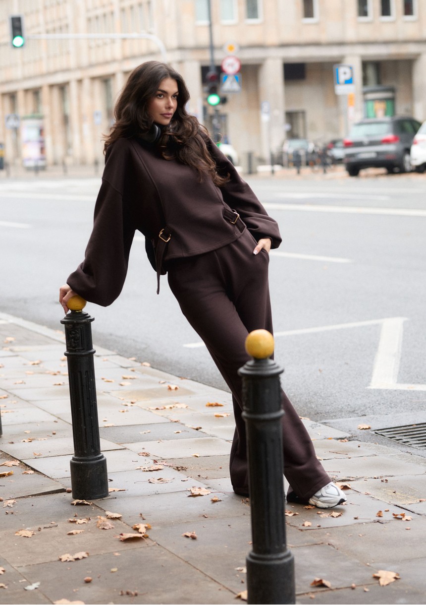 Tied - Modelująca bluza z klamrami na bokach Dark Chocolate