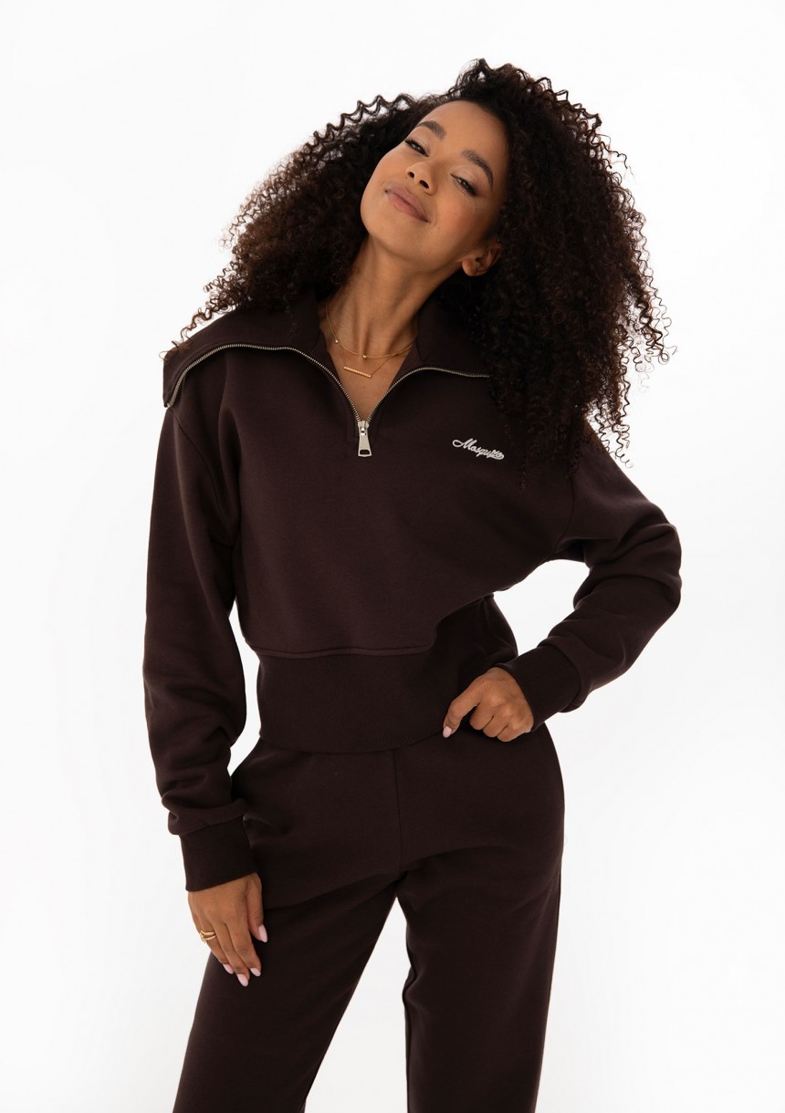 Milo - Bluza zip-up z wywijanym kołnierzem Dark Chocolate