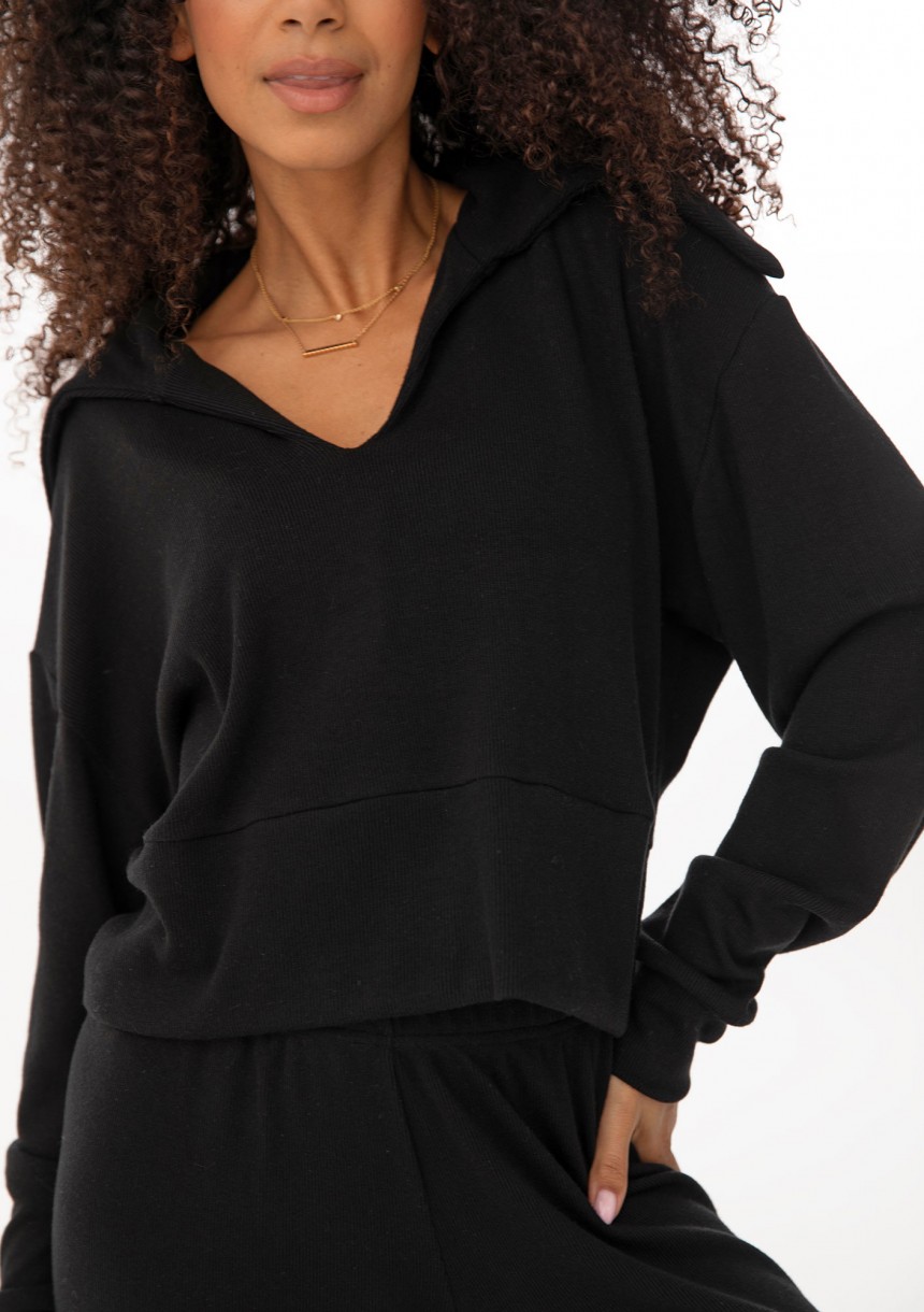 Loungey - Bluza z kołnierzem z wiskozy w prążek Black