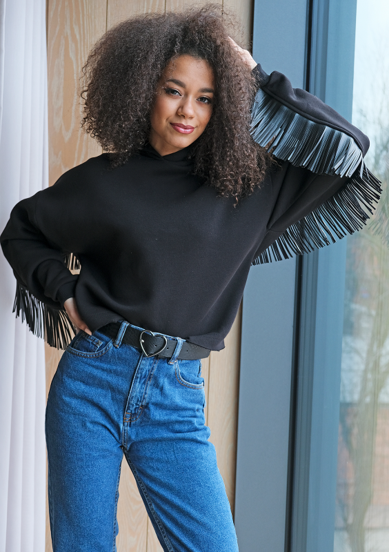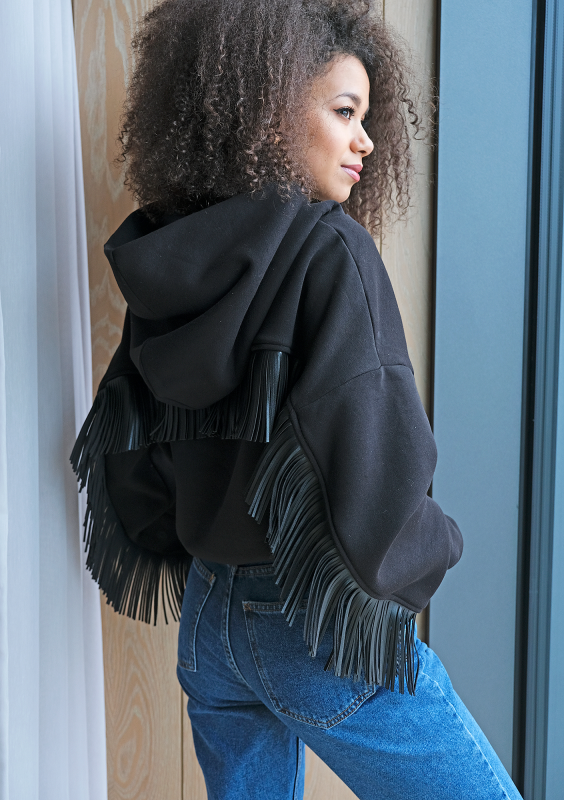 Bluza z frędzlami z eko skóry Czarna