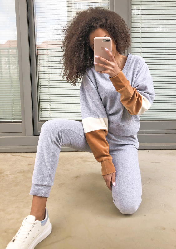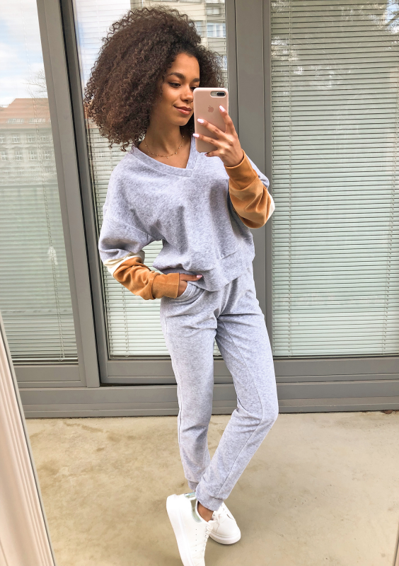 Welurowa bluza z łączonych kolorów Szara ILM