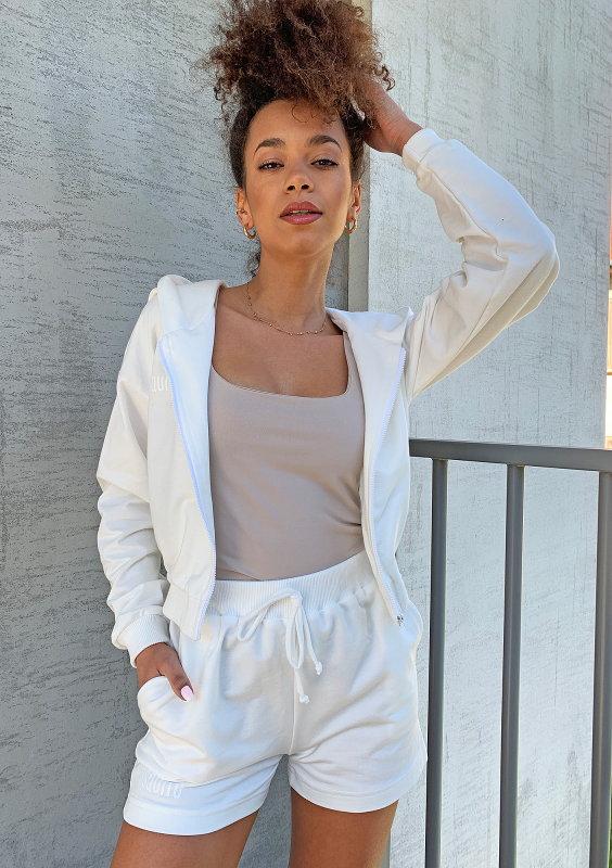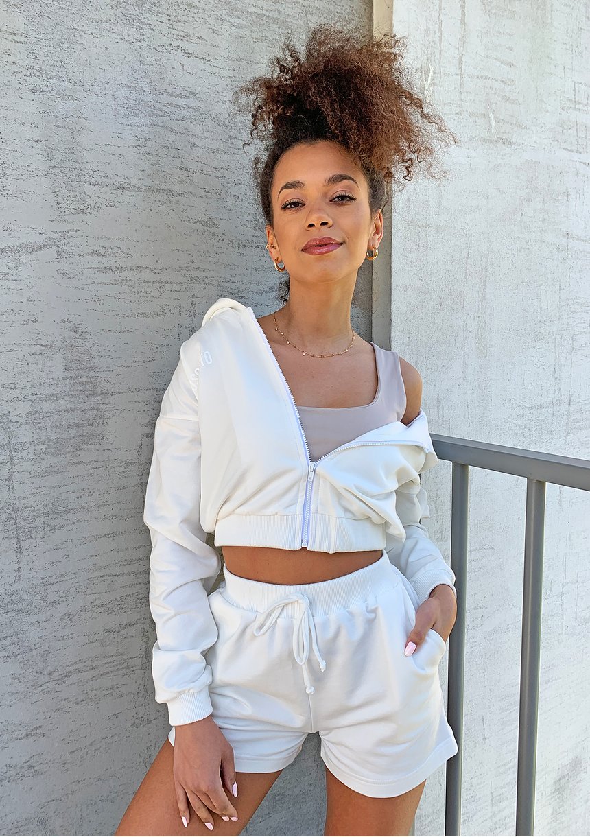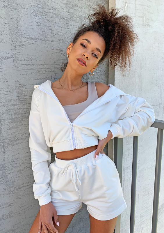 Bluza dresowa na zamek z kapturem Ecrue