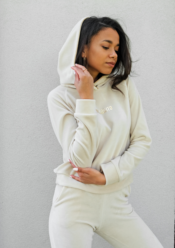 Bluza velvet z kapturem i złotymi detalami Beżowa