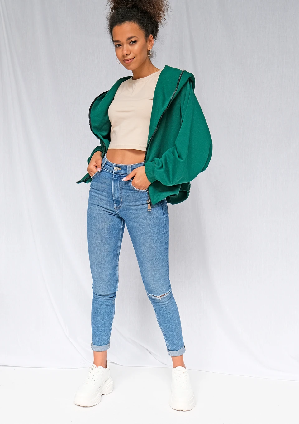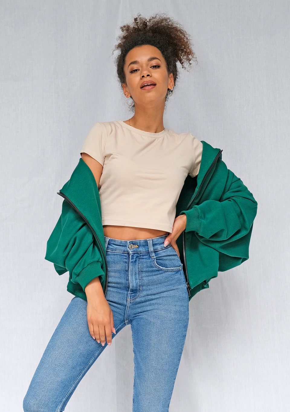 Cozy Flow - Bawełniana bluza oversize boxy v-neck Butter Beige