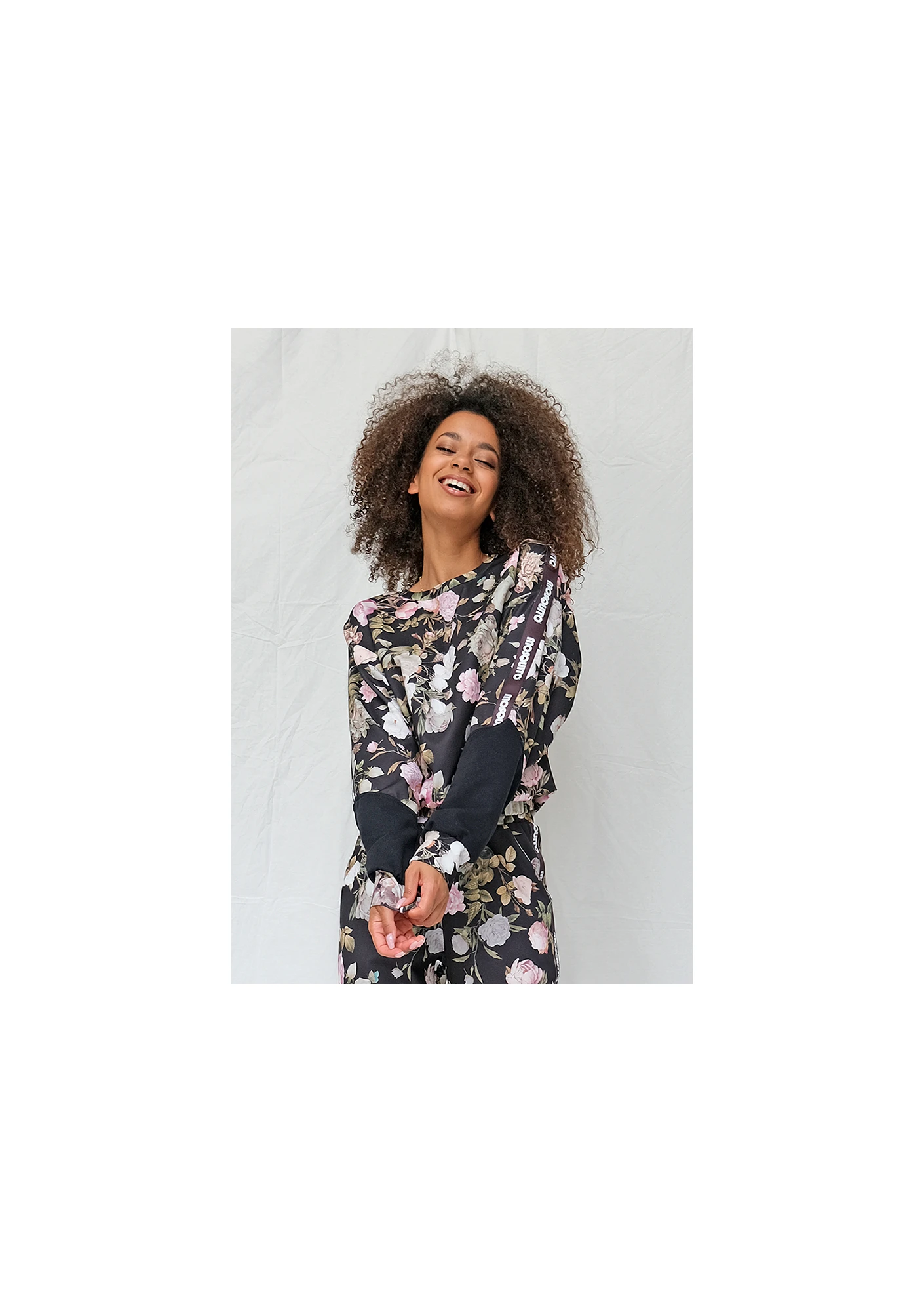 Czym wyróżnia się proponowana przez nas bluza? Przede wszystkim ciekawym printem. Motyw kwiatów jest bardzo popularny już od dłuższego czasu, ale nic nie zapowiada się na to, aby miało się to zmienić. Kolorystyka, czyli przewaga czerni w połączeniu z pastelowymi kwiatami, także łatwo zapada w pamięć oraz pozostawia spore pole do popisu, ponieważ takie kolory dobrze wyglądają w ciekawych połączeniach. Dodatkowo same rękawy od łokcia w dół są całkowicie czarne. Są one także luźniejsze, co nadaje bluzie nieformalnego charakteru. Jej tył wygląda tak samo, jedynie same mankiety również posiadają kwiatowy motyw. Na całej długości rąk znajduje się lampas z ozdobnym logo marki Mosquito, który na pewno od razu przyciąga wzrok. Bluza może być noszona na co dzień, ale także na siłownie, czy spacer. Nie posiada dekoltu, dzięki czemu można nosić pod nią koszulki. Wykonana jest z bawełny w połączeniu z laycrą. Dzięki temu jest miękka w dotyku, ale nie traci swojego kształtu w praniu. Dostępna jest w czterech rozmiarach, czyli XS, S, M oraz L. Wszystkie nasze bluzy są szyte w Polsce z zachowaniem najwyższej jakości według Państwa oczekiwań.