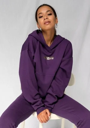 Odśwież swoją szafę i postaw na kolorowe tkaniny! Bawełniana bluza damska od Mosquito powstaje w stonowanym, fioletowym kolorze, który pasować będzie każdej miłośniczce stylu. Można zestawiać go ze spodniami jeansowymi, ciemnymi dresami, czy wreszcie pasującymi do zestawu spodniami dostępnymi w Mosquito. Fioletowa damska bluza wykończona jest złotym akcentem - na biuście znajduje się napis z nazwą marki. Złoto świetnie kontrastuje ze śliwkowym kolorem, tworząc kobiecą kompozycję. Bluzę zamawiać można w rozmiarach XS - L. Za jej staranne uszycie odpowiadają Polskie szwalnie.