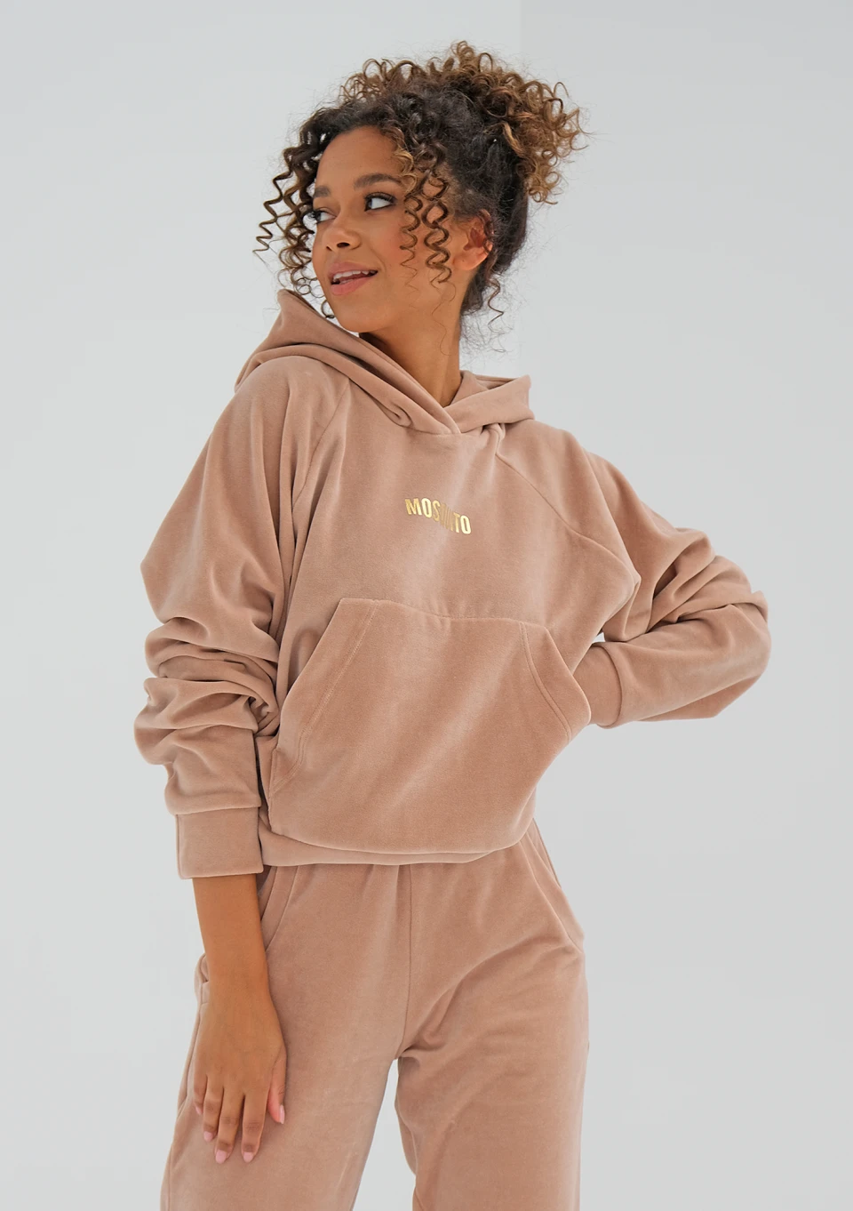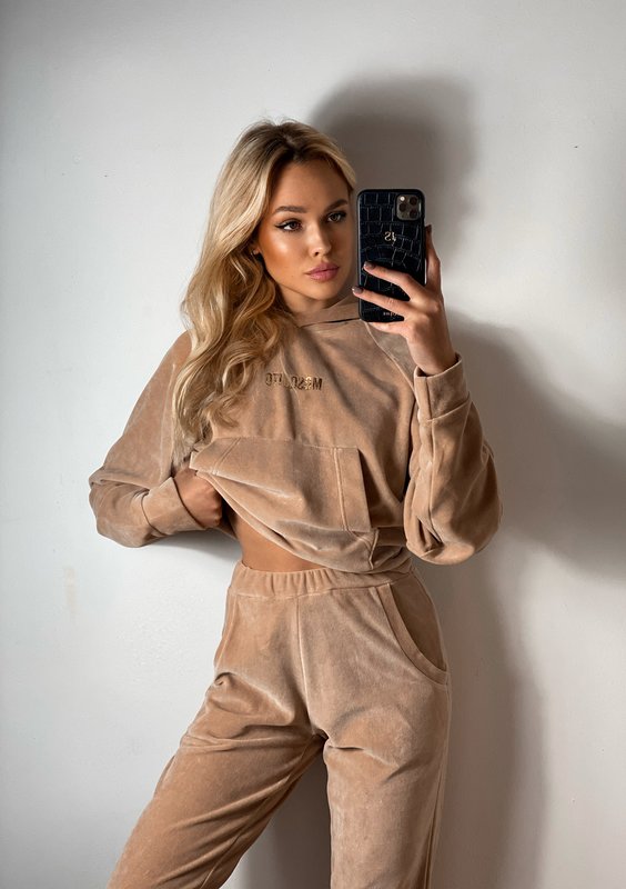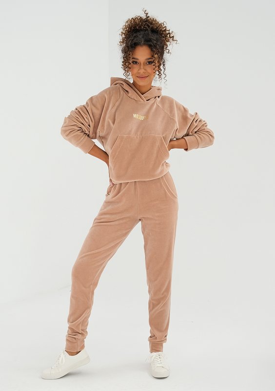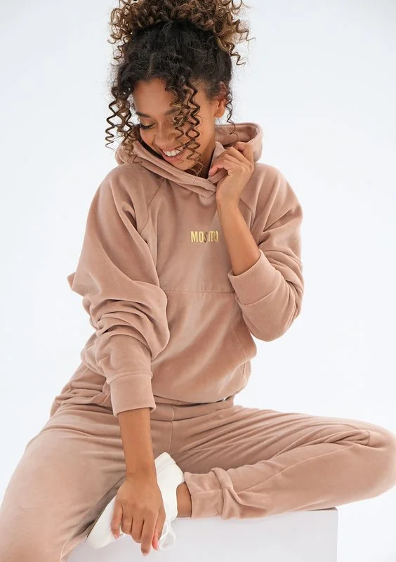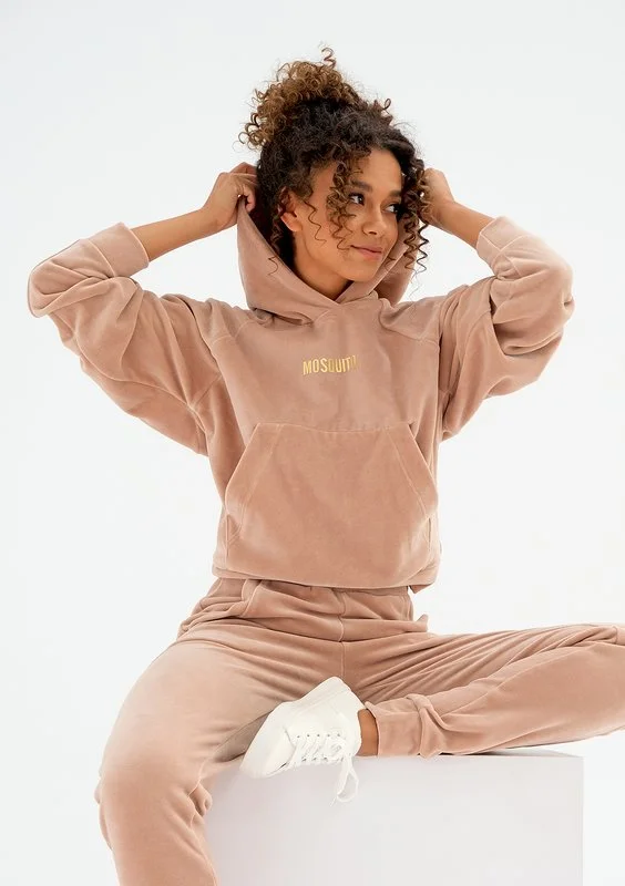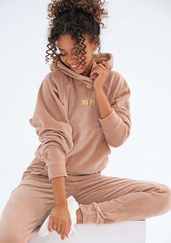 Terry - Bluza welurowa z kapturem Warm Taupe