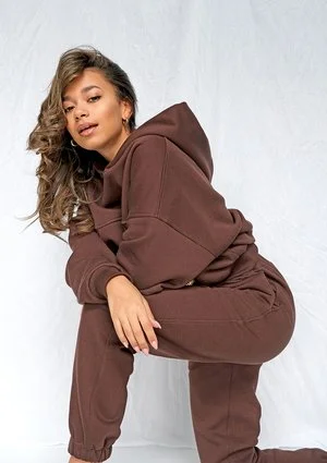 Jeśli chodzi o damskie bluzy, te w stylu oversize wciąż cieszą się sporym zainteresowaniem. Nic dziwnego, bowiem są one bardzo wygodne, a pod spód założyć można dodatkową warstwę, co jest doskonałym rozwiązaniem podczas niskich temperatur. Bluza dodatkowo wykonana jest w przyjemnym dla oka i bardzo modnym kolorze czekoladowym. Wystarczy raz na niego spojrzeć, aby całkowicie się zakochać! Atutem jest także kieszonka tak zwana kangurka z przodu, która pomieści wszystkie drobiazgi, a przy okazji modnie się prezentuje. Na samym jej dole znajduje się białe logo Mosquito, które nie rzuca się w oczy, ale nadaje bluzie charakteru. Ten model posiada także głęboki, rozłożysty kaptur, który sprawdzi się na każdą pogodę. Bluza jest bardzo miękka i ciepła w dotyku. Wykonana została bowiem z połączenia bawełny, oraz poliestru. Wewnętrzną fakturę materiału pokazujemy na ostatnim zdjęciu. Kupić ją można na naszej stronie w pięciu rozmiarach, a więc na pewno każda z pań znajdzie dla siebie ten odpowiedni.