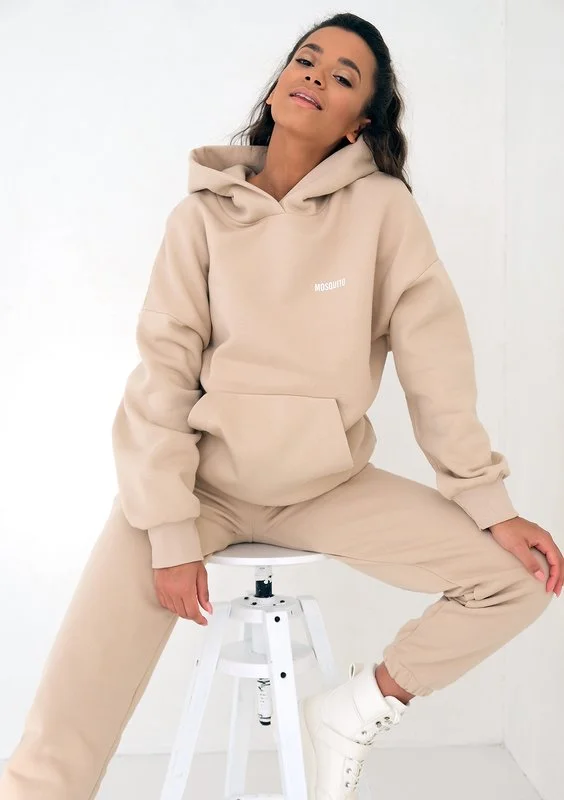 Fason bardzo luźny - oversize, kangurkowy z kapturem.