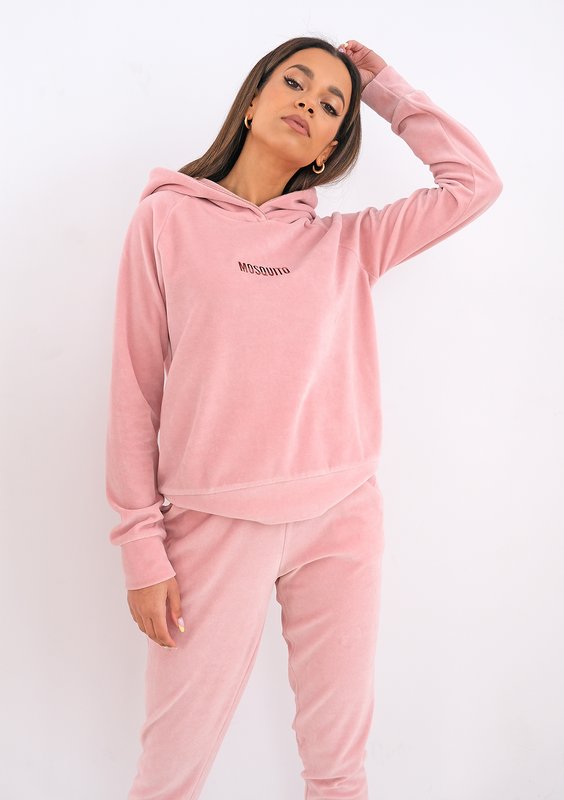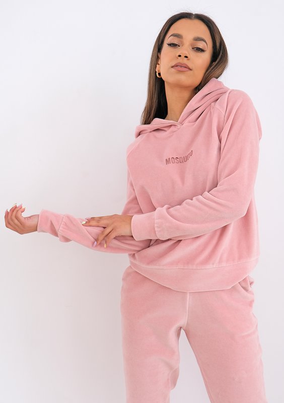 Queens - Bluza velvet z kapturem Rose Gold