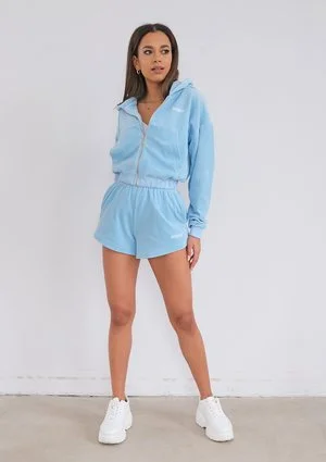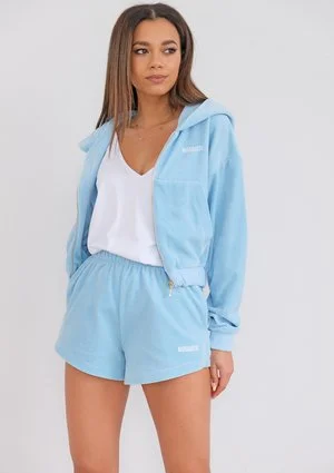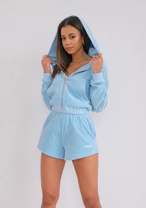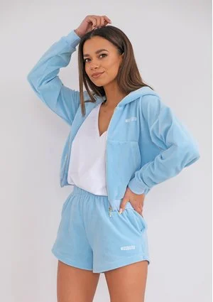 Welurowa, krótka bluza dresowa pięknie zaprezentuje się wraz z krótkimi spodenkami welurowymi od kompletu. Jej pastelowy błękit podkreśli Twoją letnią opaleniznę. Ubranie stworzy wiele modnych stylizacji – możesz nosić ją do różnych koszulek, eleganckich lub sportowych topów. Przygotuj swą szafę na wakacje: welurową, błękitną bluzę z pewnością nie raz chętnie założysz na wieczorny spacer. Podziel się swym pomysłem na gustowną stylizację – odwiedź nas na Instagramie, gdzie znajdziesz mnóstwo modowych inspiracji.