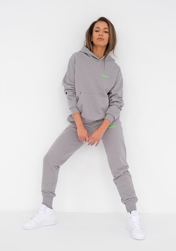 Szara bluza z kapturem to model wyjątkowy. Posiada uniwersalny fason wygodnej kangurki, wyróżnia się ciekawym duetem szarości z limonkową zielenią loga. Stylowa propozycja na każdą porę roku.