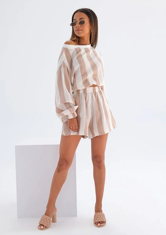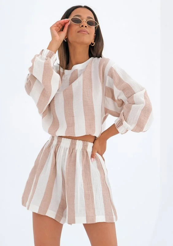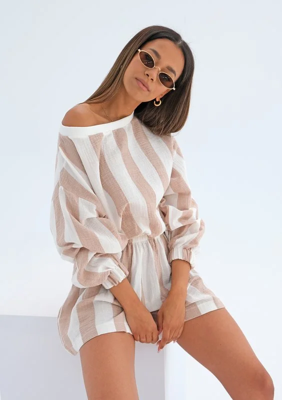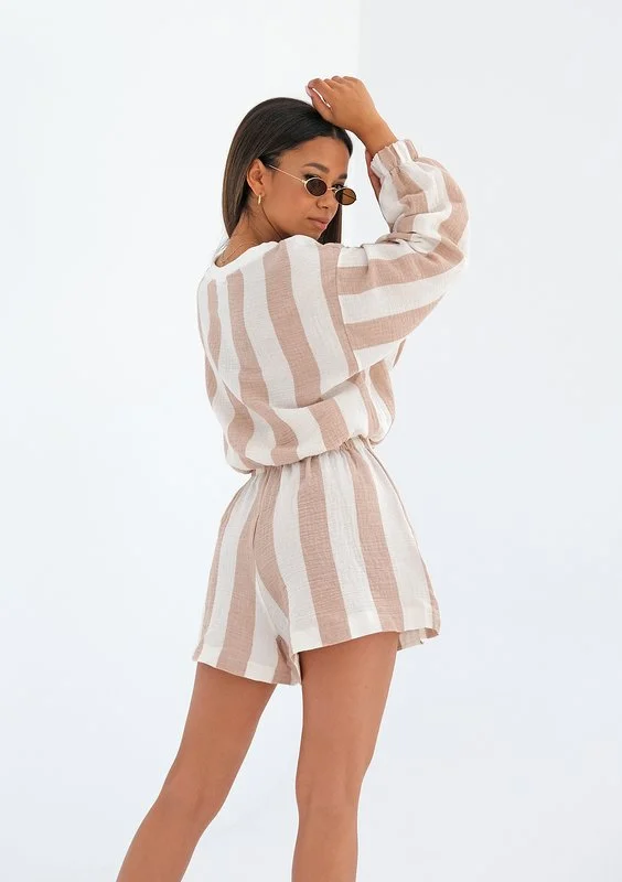 Playa - Bluza z muślinu w paski Beżowa