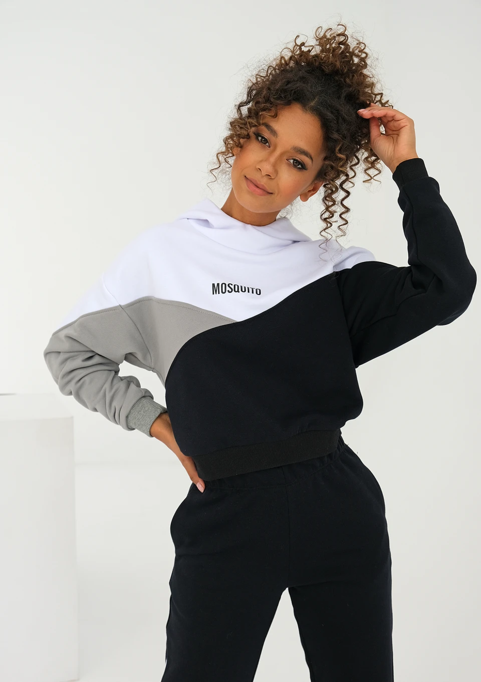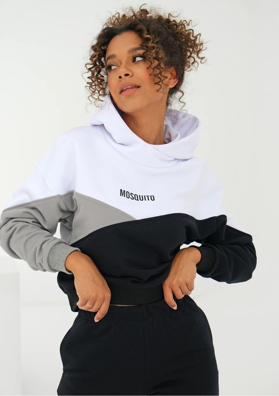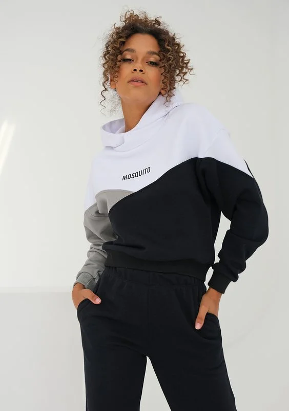 Wyjątkowa bluza damska z kapturem o zestawieniu trzech kolorów. Wykonana z miękkiej dzianiny z bawełną i odrobiną poliestru. Umili każde popołudnie!