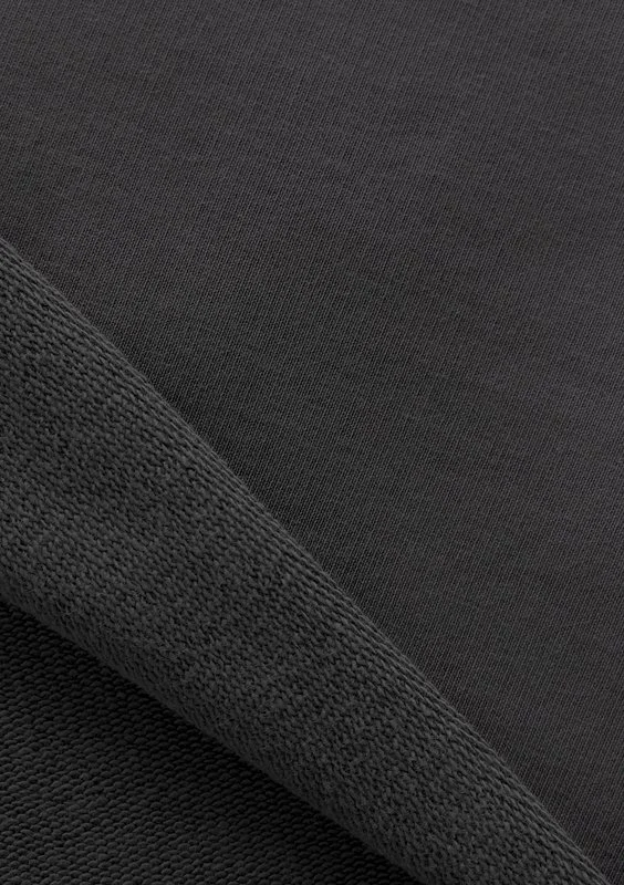Skład 90% bawełna, 10% poliester. Jest to materiał o średniej gramaturze, z pętelkową fakturą od wewnątrz i wykończeniem zapewniającym dodatkową miękkość. Ostatnie zdjęcie ukazuje obie strony dzianiny.