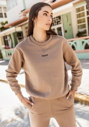 Beżowe bluzy damskie dresowe takie jak prezentowany model sprawdzają się przez cały sezon jesienno-zimowy. Naturalna bawełna zapewnia pełen komfort skóry, a miła faktura wewnętrznej strony przyjemnie ogrzewa w chłodniejszych chwilach. Szyjemy dresy damskie o różnej grubości materiału – ta bluza jest wykonana z najgrubszej dzianiny, które oferujemy: od środka wyścieła ją drobny puch, lecz nie jest to najgrubszy z naszych rodzajów dzianin. Bluza sprawdzi się przez większość dni w roku. Pod okrągłym dekoltem umieszczamy czarny nadruk ukazujący nazwę naszej marki. Prestiżowy look podkręcisz nosząc do tej beżowej bluzy spodnie od kompletu. Znajdziesz je również w nowej ofercie. Zarówno prezentowaną bluzę, jak i spodnie przygotowujemy w szerokim zakresie rozmiarów: XS – XL.