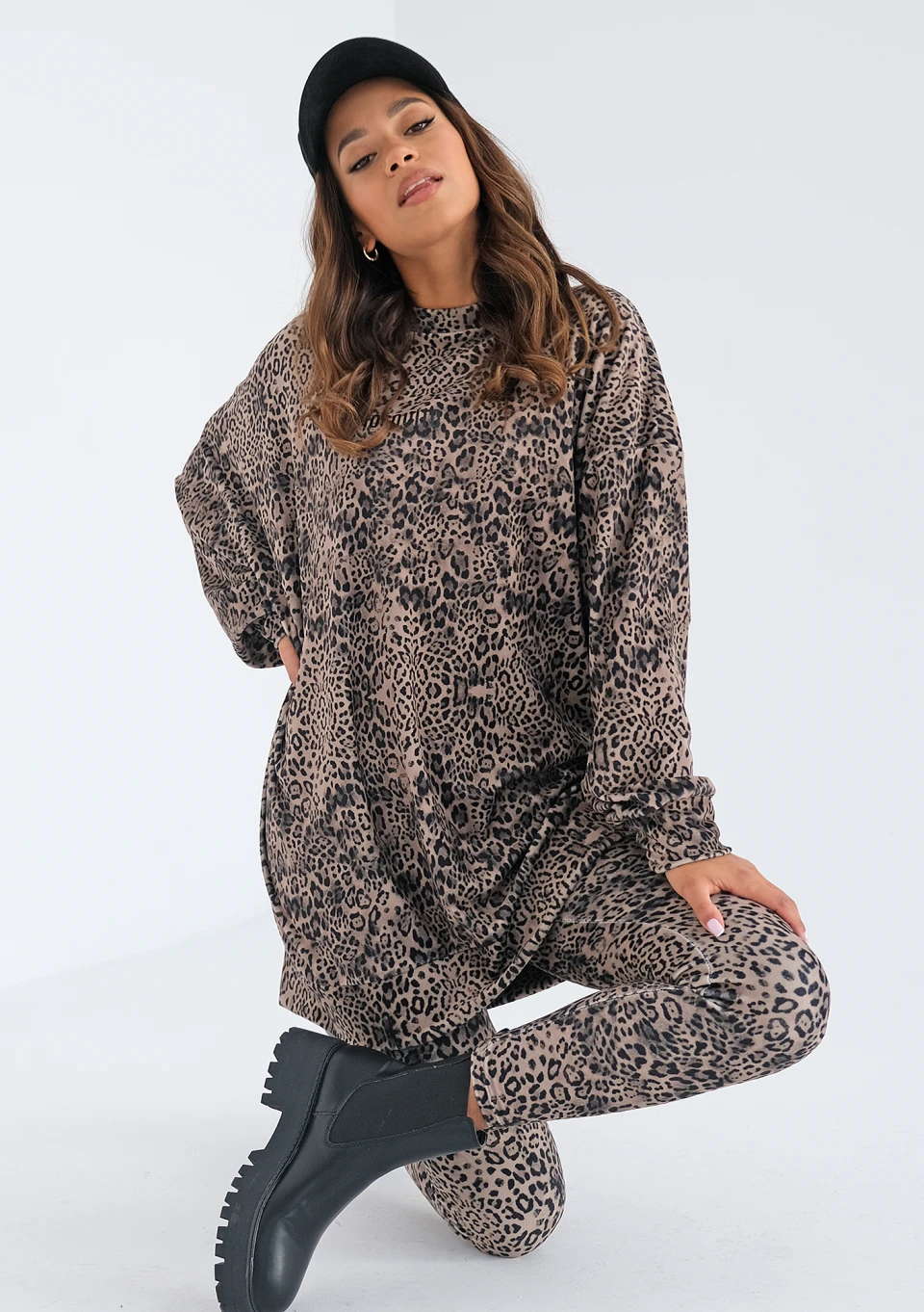 Snug - Długa bluza velvet Beige Leopard
