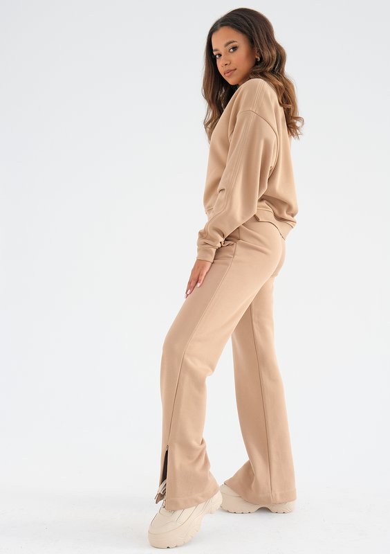 Beżowa bluza w naturalnym odcieniu kawy latte, o wygodnym fasonie z delikatnym półgolfem. Uniwersalna i pasująca do wielu stylizacji, efektownie ozdobiona beżowym logotypem.