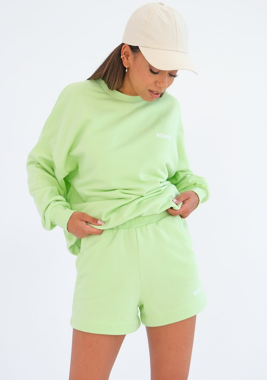 Kolorowa bluza w promiennym kolorze neonowej limonki. To wygodne okrycie na cały rok, z miękkiej dzianiny bez puchowego spodu. Model o prostym, uniwersalnym kroju.