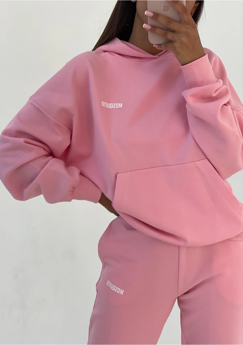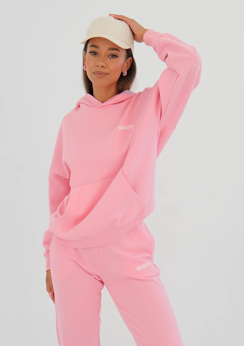 Różowa bluza damska z kapturem i kieszenią to model w neonowym odcieniu, o bardzo luźnym, sportowym kroju oversize. Nie posiada wewnętrznego puchu, dlatego sprawdzi się przez cały rok.