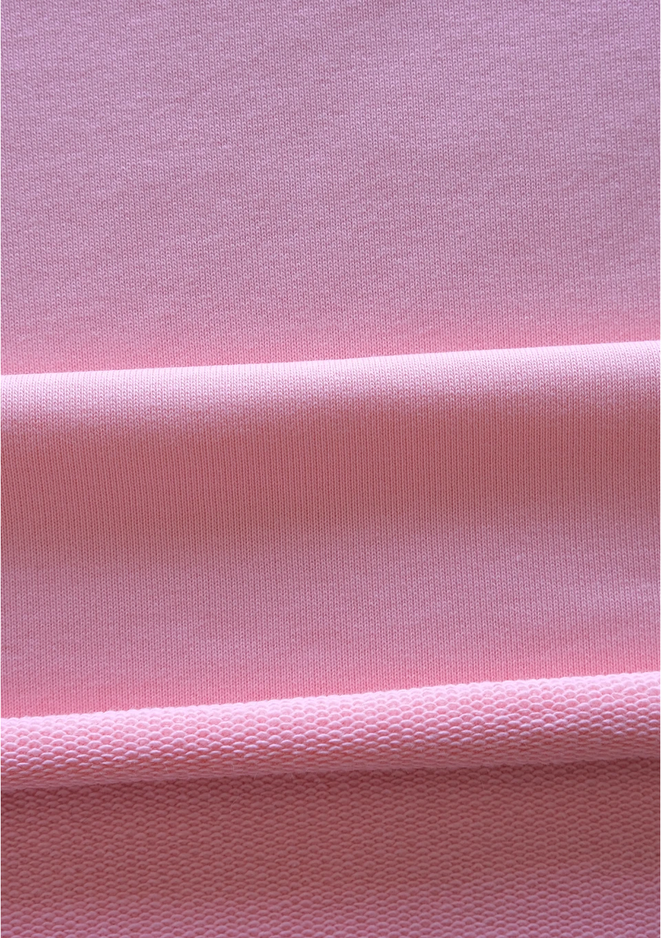 Skład 90% bawełna, 10% poliester. Jest to materiał o średniej gramaturze, z pętelkową fakturą od wewnątrz i wykończeniem zapewniającym dodatkową miękkość. Ostatnie zdjęcie ukazuje obie strony dzianiny.