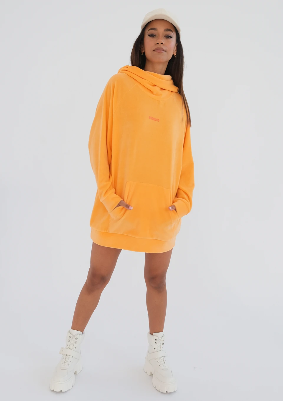 Melby - Bluza velvet z kapturem Neon Orange
