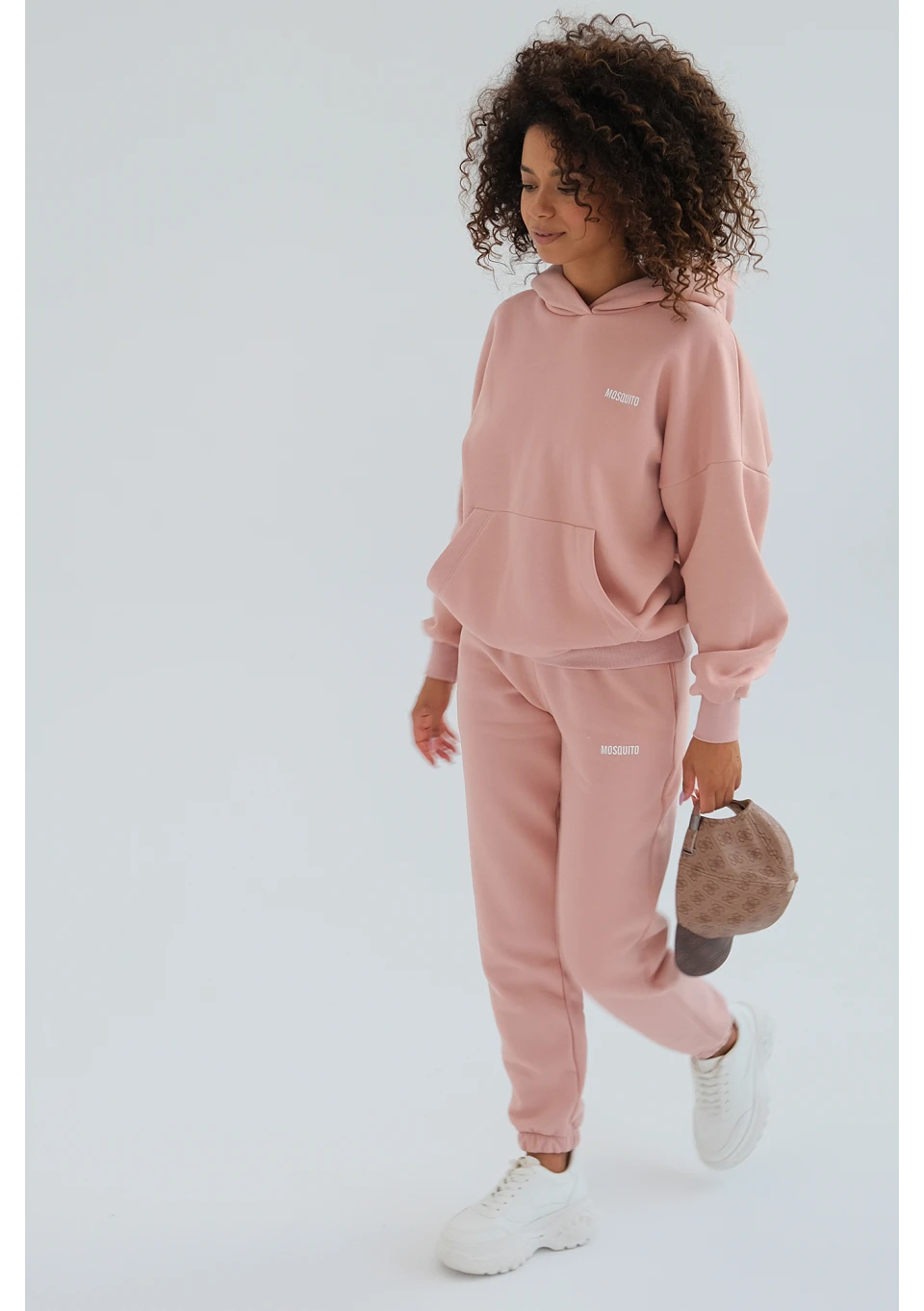 Funkcjonalna i wygodna, sportowa bluza oversize z kapturem i kieszenią, wykonana z miękkiej w dotyku, certyfikowanej dzianiny w pudrowym różu.
