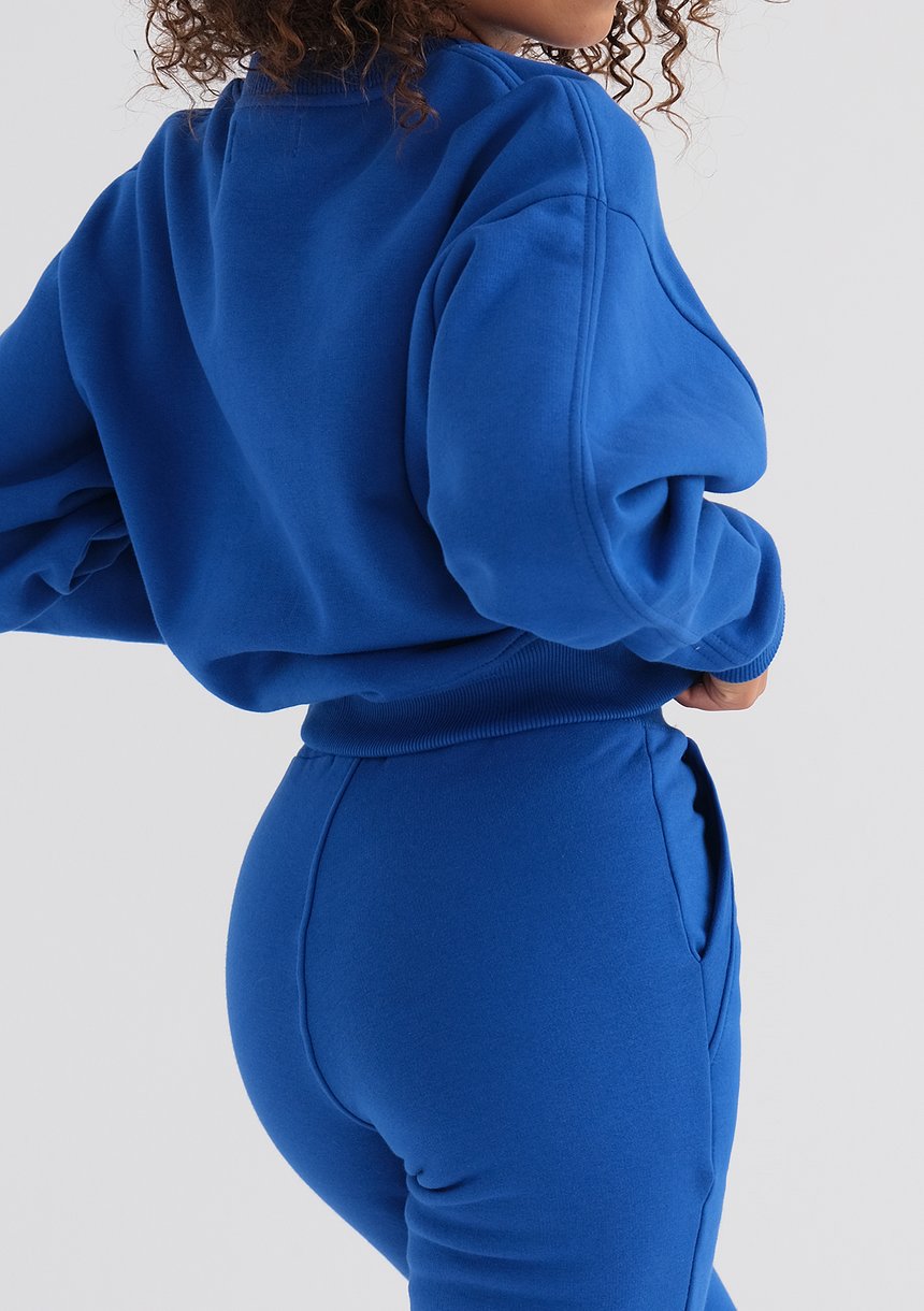 Zaskocz wyjątkowym kolorem. Kobaltowa bluza niezwykle ożywi Twój look! Model posiada klasyczny krój, dzięki temu z łatwością skomponujesz ją w stylizacjach sportowych, jak i casual. Jest krótka, starannie wykończona elastycznym ściągaczem. Świetnie podkreśla sylwetkę. To bluza wykonana z miękkiej dzianiny i ozdobiona stylowym logiem.